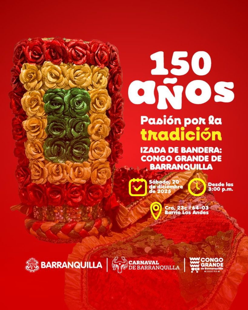 El sábado 20 de diciembre, la danza Congo Grande de Barranquilla, la manifestación más antigua del Carnaval y una de las expresiones afrodescendientes más emblemáticas del país, celebrará 150 años de existencia ininterrumpida, reafirmando su papel como símbolo vivo de identidad, resistencia cultural, memoria histórica y alegría popular en la fiesta más grande de Colombia.