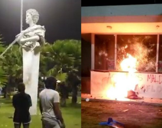 Posted julio 24 - 1:42 pm Intentaron tumbar la estatua de Adela de Char y vandalizaron el CAI Las Flores