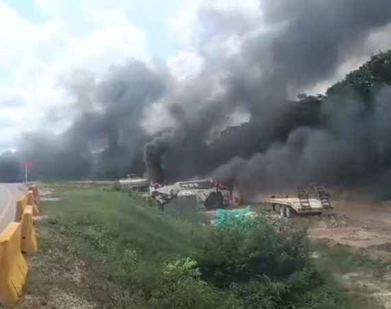 Posted octubre 1 - 12:37 pm Hombres armados incendian maquinaria amarilla y equipos de construcción vial en los Montes de María