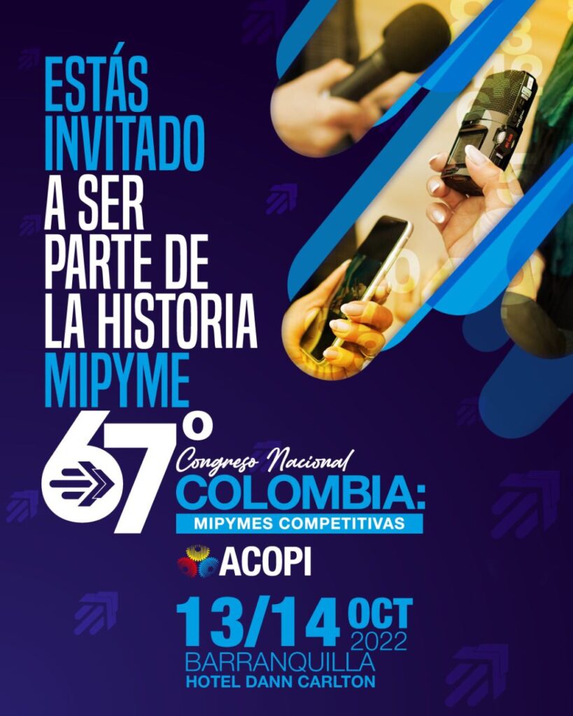 Por tal razón, se realizará en la ciudad de Barranquilla, los días 13 y 14 de octubre del presente año, el “67° Congreso Nacional Colombia: MiPymes competitivas”.