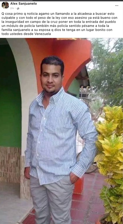 “Hagamos un llamando a la alcaldesa a buscar estos culpables y con todo el peso de la ley con esos asesinos. Ya está bueno con la inseguridad en Campo de la Cruz, (…) Sentido pésame a toda la familia Sanjuanelo, a su esposa, que Dios te tenga en un lugar bonito”, señaló una hombre que manifestó ser primo de la víctima.
