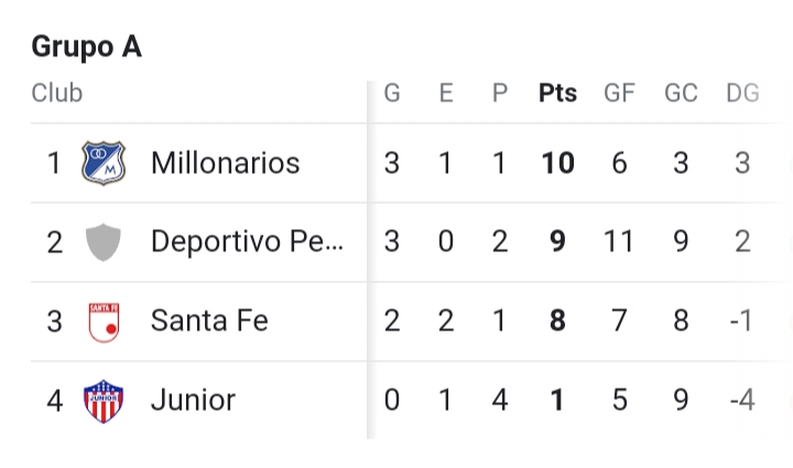 En el caso de Junior, este es colero con una unidad y sin opciones, mientras que Santa Fe es tercero con 8 y dependerá de que el Tiburón le gane su juego a los pereiranos y ellos venzan a Millonarios; estos últimos también estarán sostenidos de lo que pase en Barranquilla de igualar con su émulo, pues de suceder eso deberán apretar porque Junior no le permita ganar al Grande Matecaña.