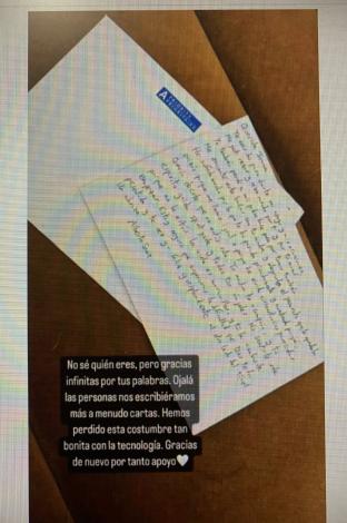 A lo que la mujer de 29 años respondió: “No sé quién eres, pero gracias infinitas por tus palabras. Ojalá las personas nos escribiéramos más a menudo cartas. Hemos perdido esta costumbre tan bonita con la tecnología. Gracias de nuevo por tanto apoyo”.