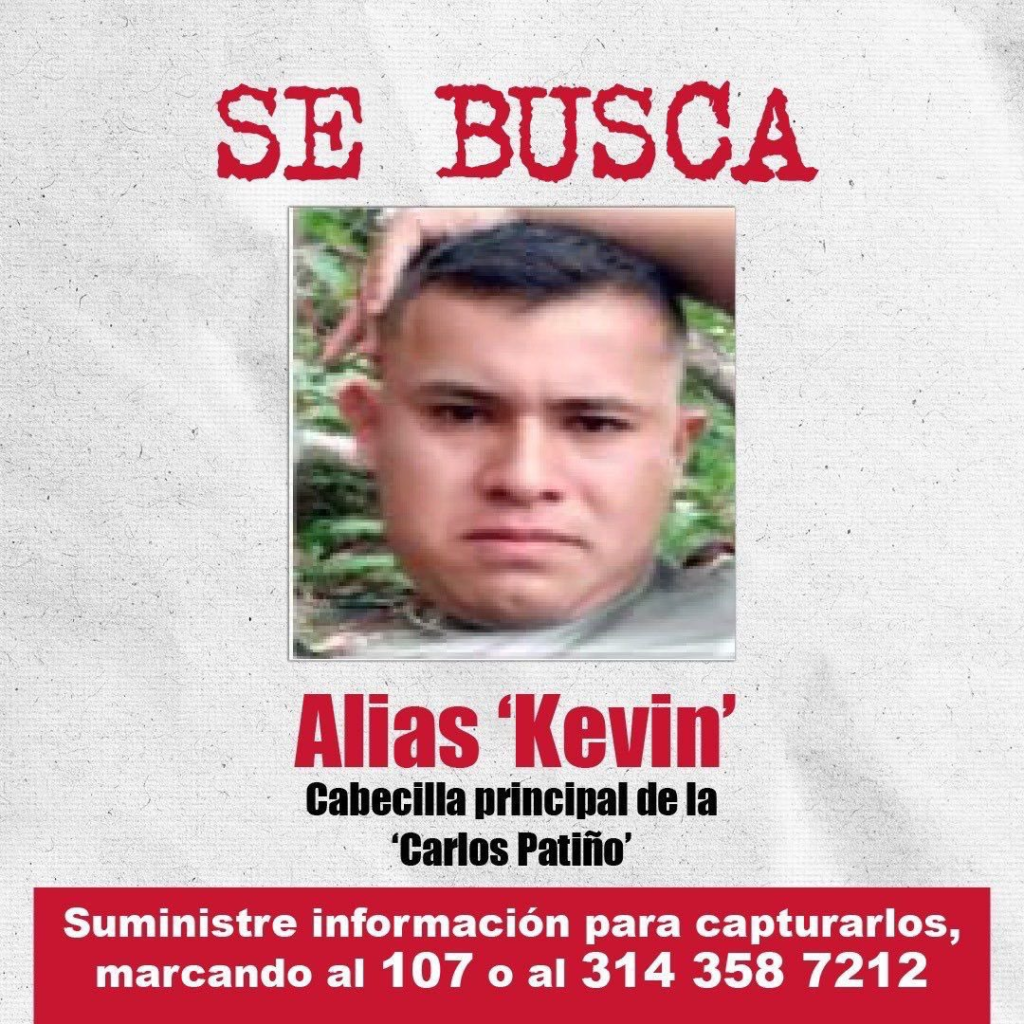 Alias Kevin es señalado de ser el segundo cabecilla de la estructura Carlos Patiño de las disidencias de las FARC que comanda alias Iván Mordisco. Los territorios de injerencia criminal de este grupo guerrillero son los departamentos del Cauca y Valle del Cauca.