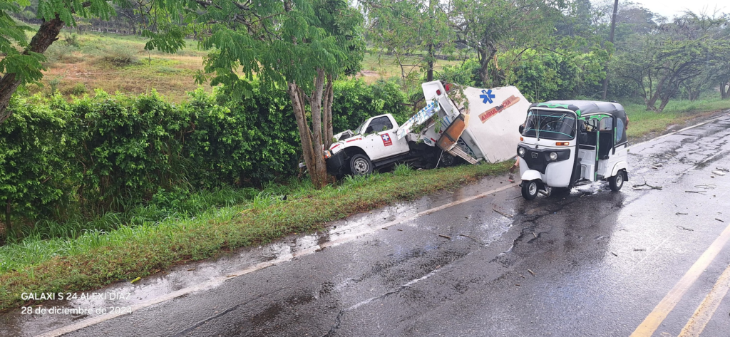 Indica el reporte de las autoridades de tránsito que el vehículo de asistencia médica perdió el control, se salió de la carretera e impactó contra un elemento rígido tipo árbol.