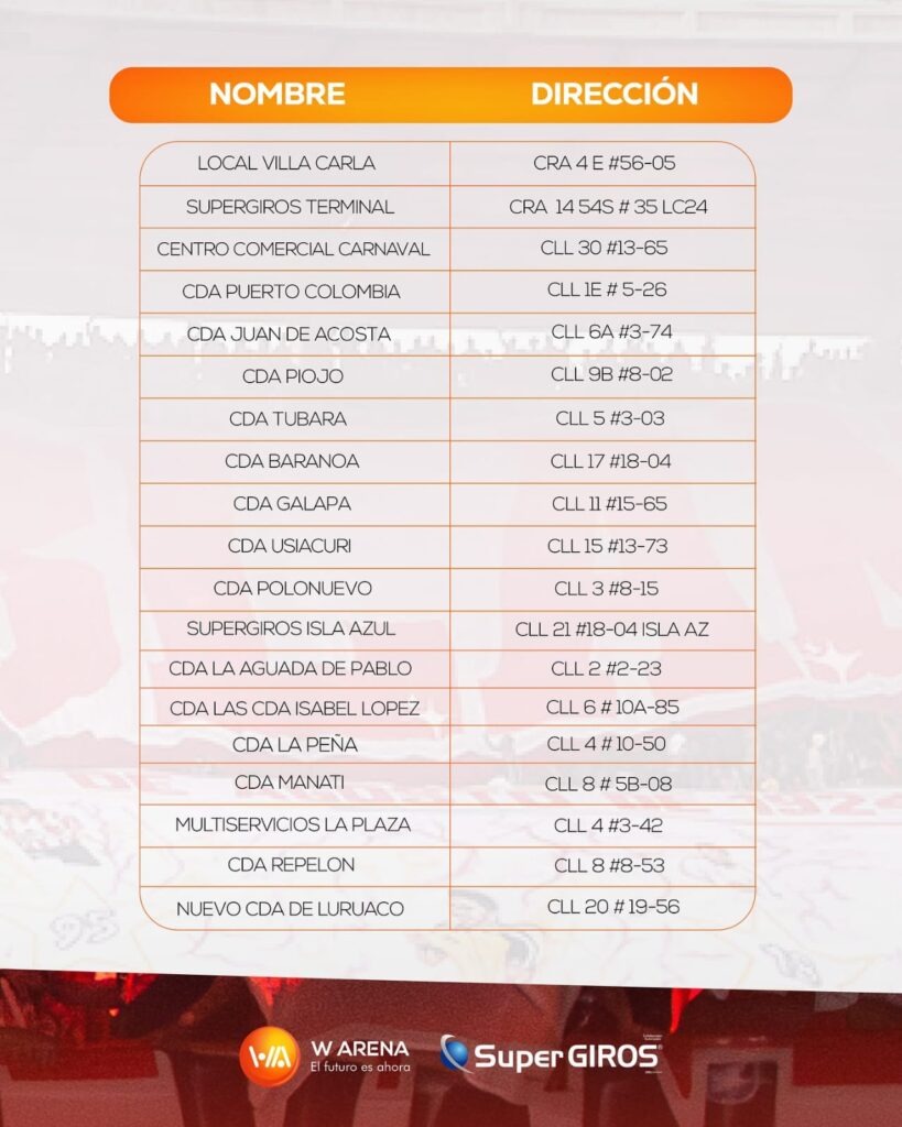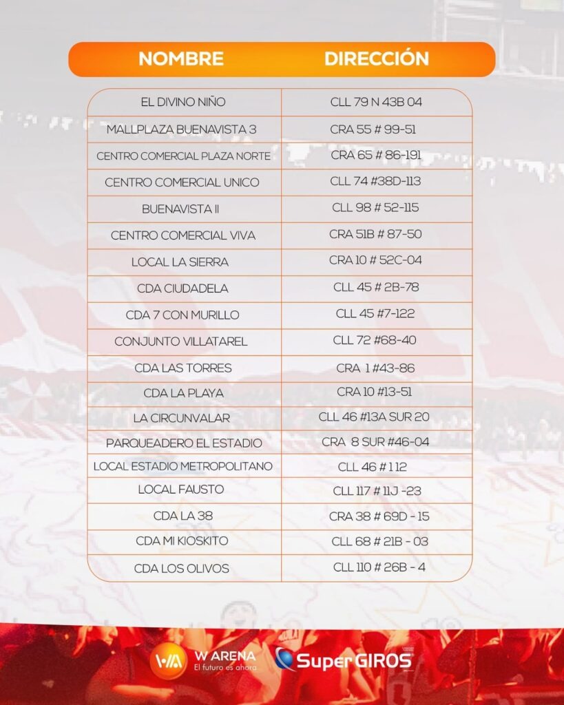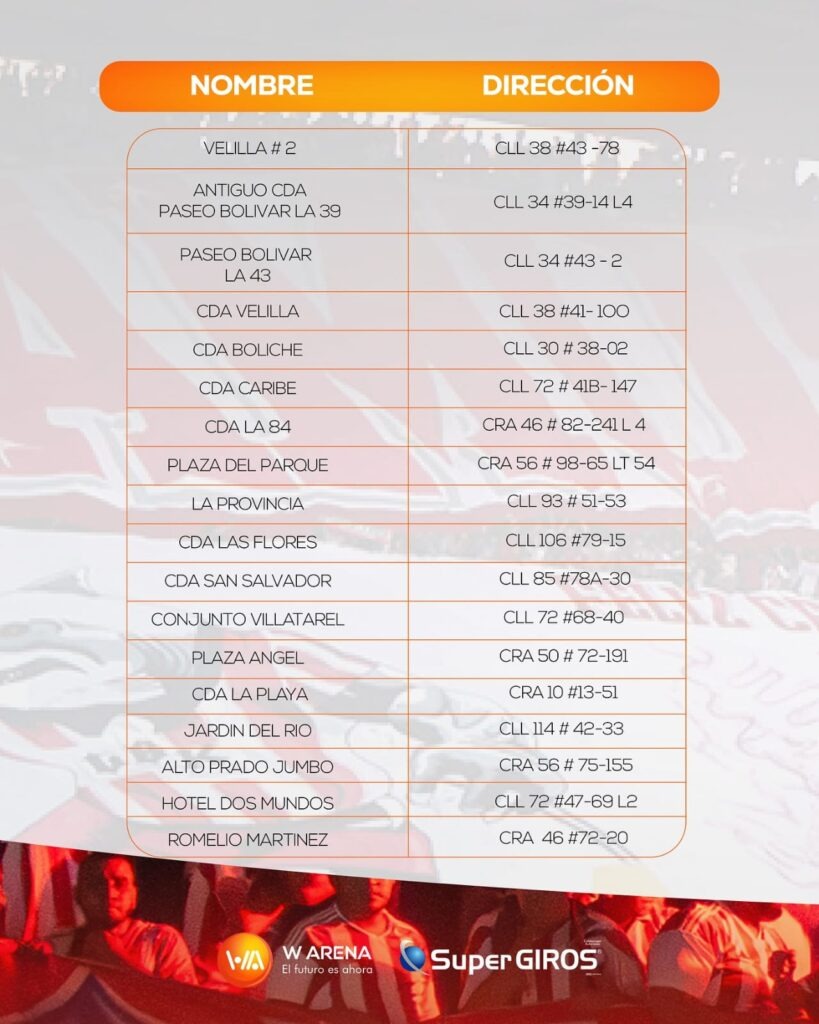 Las entradas físicas también se podrán conseguir en esta casa de recaudo, que para darle rapidez, seguridad y comodidad a los hinchas ‘rojiblancos’, dispuso diversos puntos oficiales en Barranquilla y en municipios del Atlántico.