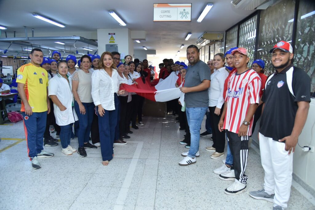 Los ambientes de confección del Centro Industrial y de Aviación fueron el escenario escogido para la entrega de 4.000 metros de lo que será la bandera más larga del mundo, elaborada por más de 40 aprendices e instructores del SENA Atlántico.