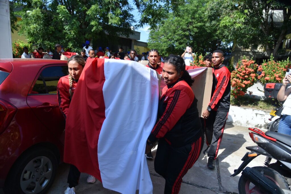 “Hacemos entrega de 4.000 metros de amor de la bandera del Junior de Barranquilla al presidente de la Fundación Centenario. Estamos felices de poder sumar a este sueño ambicioso y retador, de tener la bandera más larga del mundo de un equipo de despierta pasión y realmente devoción. Felicidades, 100 años de historia. ¡Gracias, Junior!”, afirmó Jacqueline Rojas, directora del SENA Atlántico.