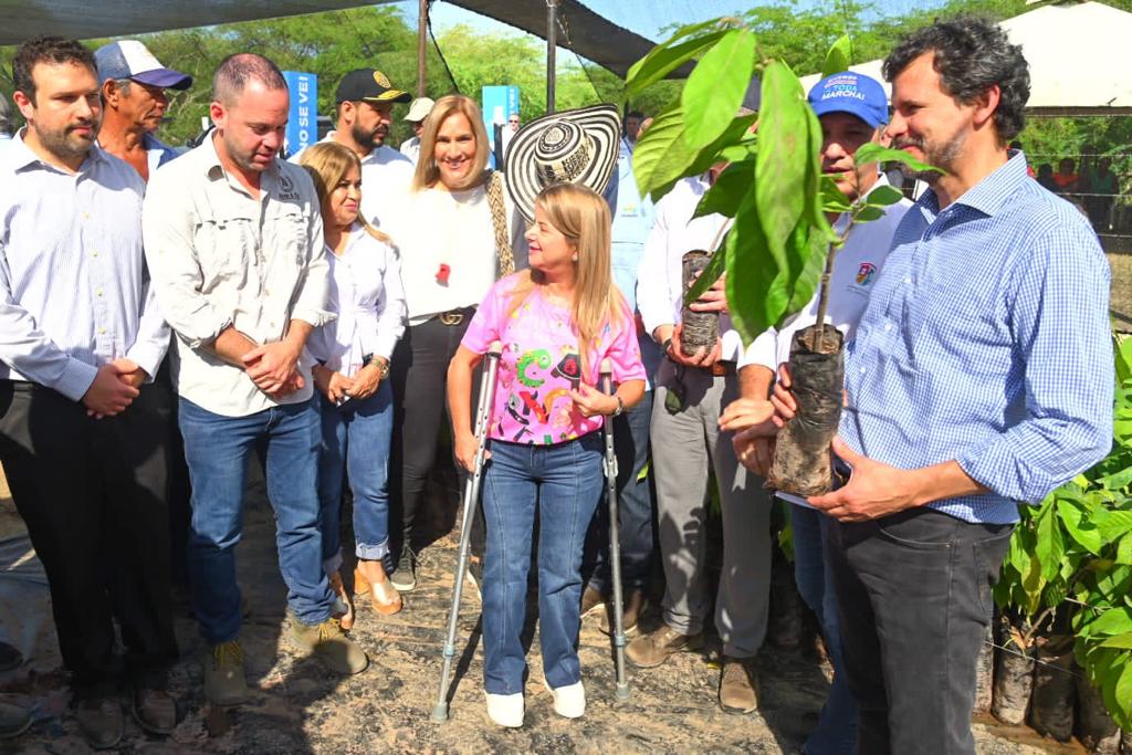 La Gobernadora del Atlántico visitó en Suan el primer vivero de cacao, junto al presidente del Banco Agrario y el de la Agencia de Desarrollo Rural.