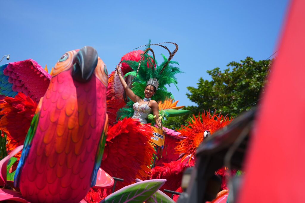 Finalmente, el tercer lugar lo obtuvo ‘Amanecer Caribe’, diseñada por Miller Cabarcas y elaborada por Rubiel Badillo, con el patrocinio de ARA. La carroza celebró la biodiversidad de la región con una majestuosa guacamaya entre flores tropicales y lianas, evocando el amanecer en la costa y exaltando la armonía entre naturaleza y cultura.