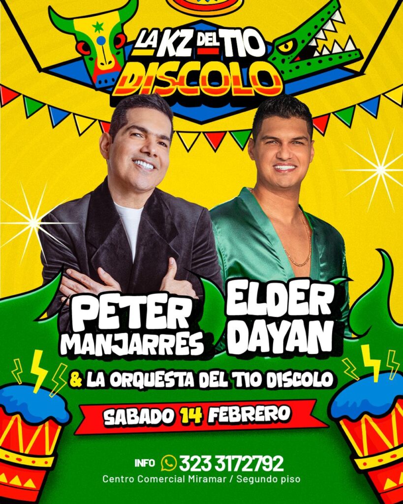 El sábado 14 de febrero, la tradicional KZ del Tío Díscolo abrirá sus puertas con un cartel de alto nivel: Peter Manjarrés, Elder Dayán y la orquesta del Tío Díscolo, en una noche que promete vallenato de primera línea y ambiente carnavalero.