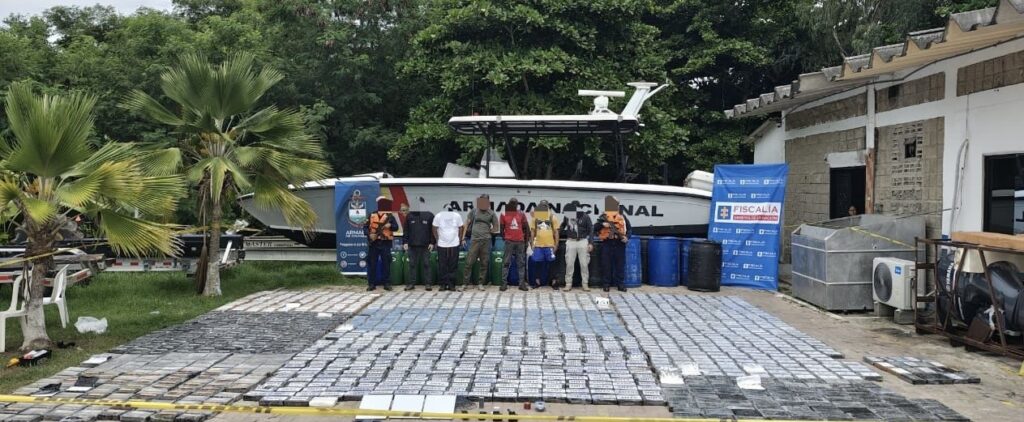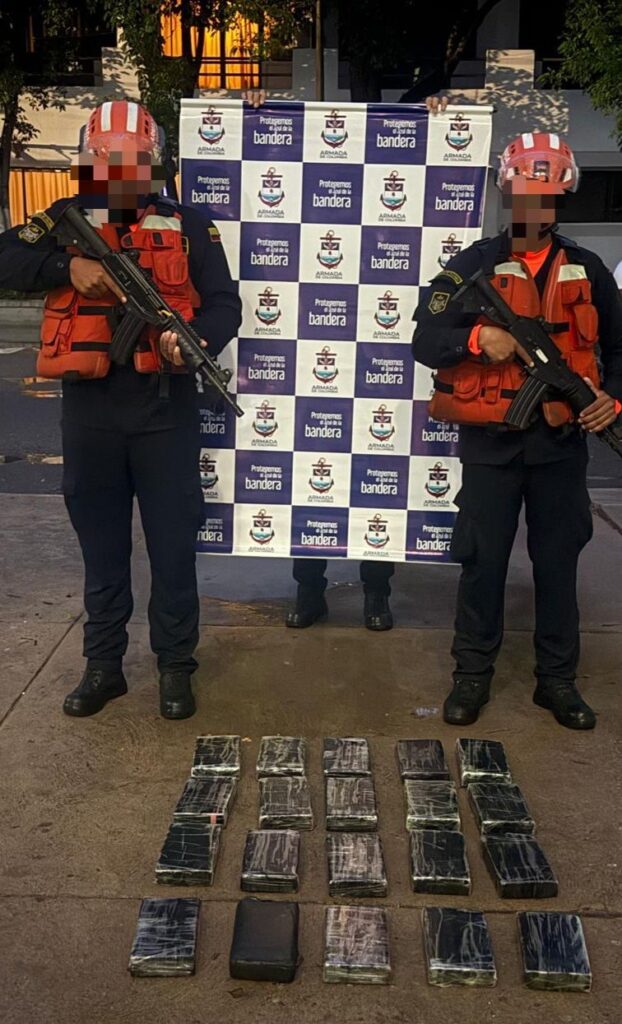 La Armada reveló: “En su interior fueron hallados 1.675 kilogramos de clorhidrato de cocaína, así como cuatro sujetos mayores de edad”.