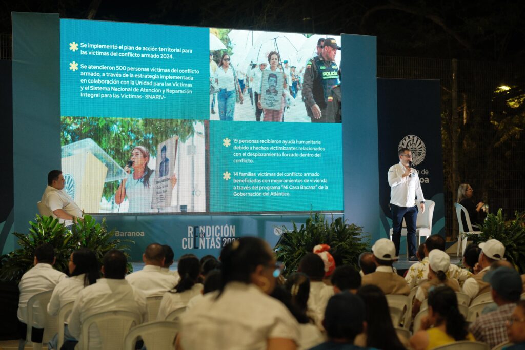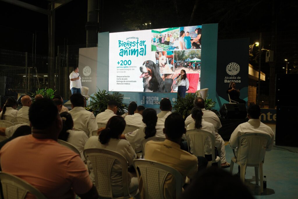 El alcalde de Baranoa, Edinson Palma, presentó la Audiencia Pública de Rendición de Cuentas 2024, en la que destacó que en su primer año de gestión se logró un avance del 80% en las metas del Plan de Desarrollo y una inversión total de $109.511 millones, superando ampliamente el presupuesto inicial aprobado de $79.053 millones. El evento se llevó a cabo en la cancha múltiple del estadio Eugenio Gómez Arteta y contó con la participación de diferentes sectores de la comunidad.