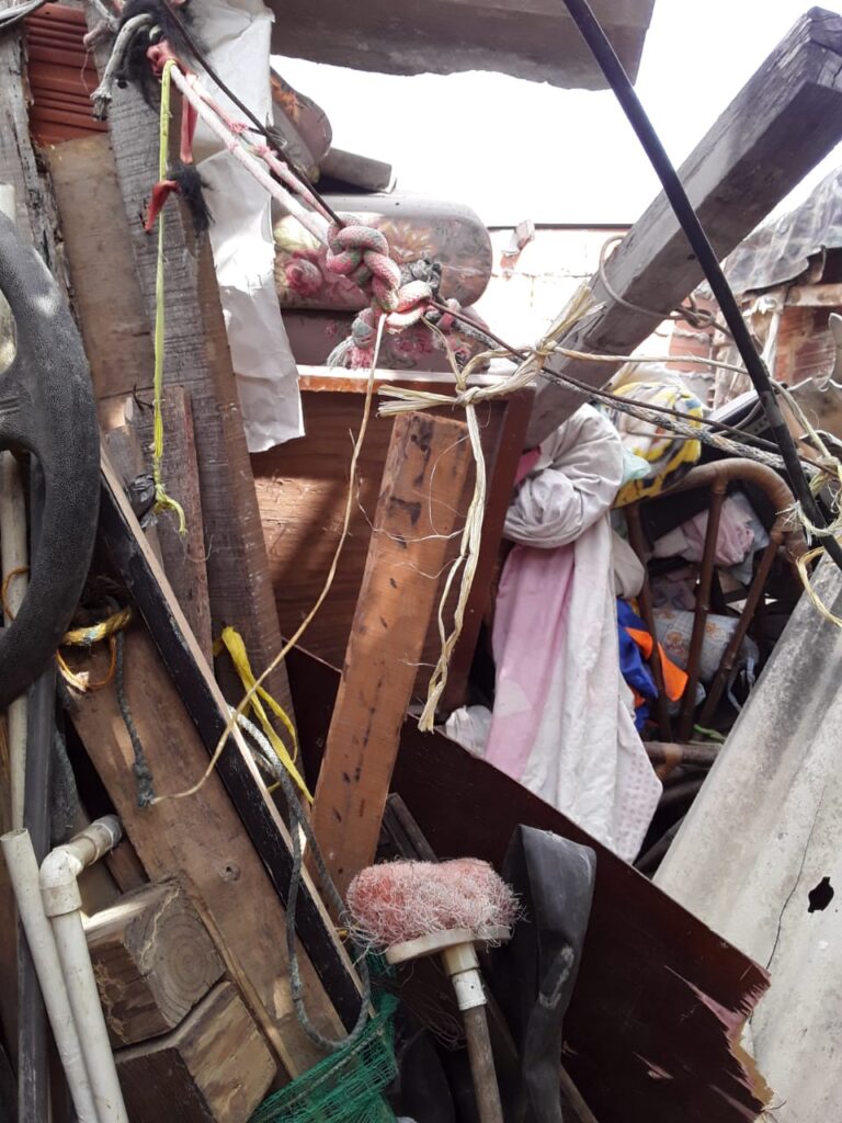 Justo cuando se dirigían hacia el interior de la vivienda, todo se derrumbó: “Yo me estaba yendo para allá adentro y sentí que se vino la cosa para abajo, él me abrazó y yo lo abracé, no sé si fue una lámina o un blog que nos cayó”.
