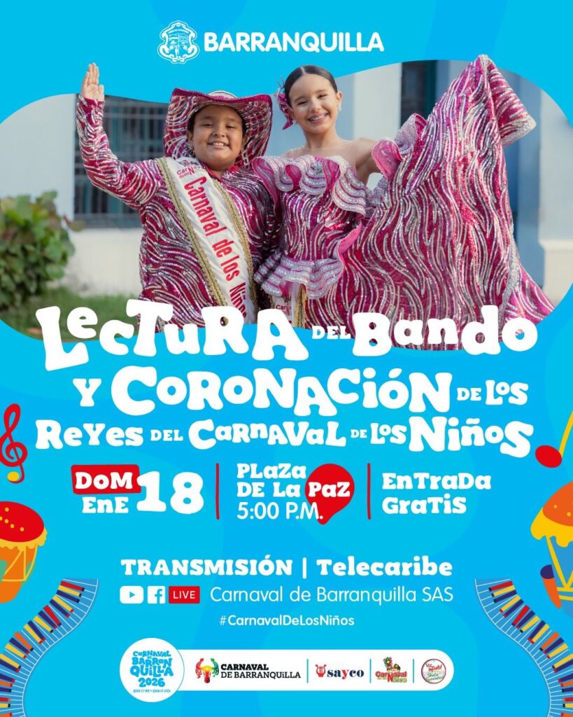 La Plaza de la Paz recibirá este domingo 18 de enero a la Lectura del Bando y Coronación de los Reyes del Carnaval de los Niños, Sharon Acosta y Joshua Ortiz.