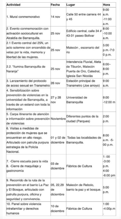 La Alcaldía de Barranquilla, a través de la Oficina de la Mujer, Equidad y Género, conmemora este 25 de noviembre el Día Internacional de la Eliminación de la Violencia contra la Mujer y el Día Distrital contra el Feminicidio, instaurado mediante el Acuerdo 010 de 2017 del Concejo de Barranquilla.