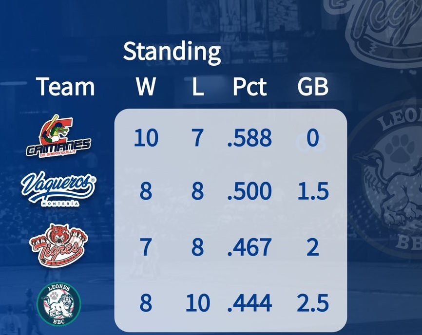 El mes de noviembre cerrará el jueves 30 con los choques entre Tigres y Leones en la Arenosa y Caimanes visitando a Vaqueros.