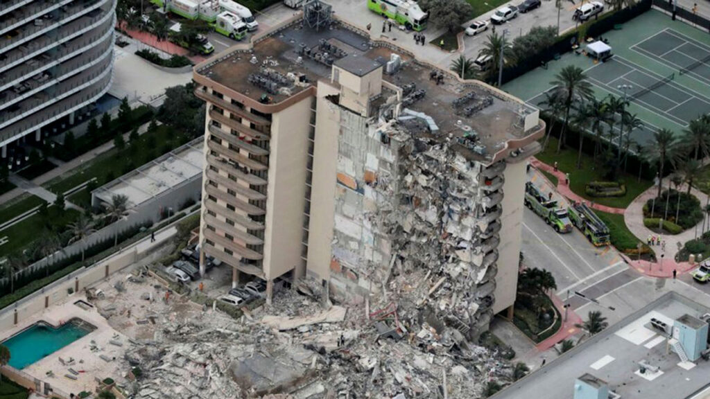 Un edificio de 12 pisos y de 136 apartamentos, ubicado en el complejo Champlain Towers South Condos, sector de Surfside, colapsó en Miami Beach, Florida.