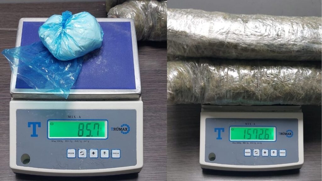 Según el reporte entregado por las autoridades, los agentes le hicieron señal de pare al vehículo donde se transportaban los dos individuos y en medio de la requisa encontraron un maletín con tres paquetes con más de un kilo y medio de marihuana y 85 gramos de cocaína.