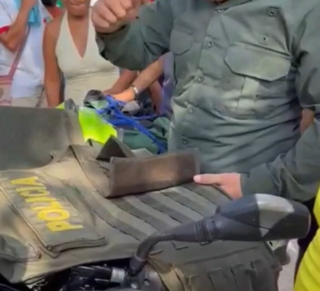 En medio del robo, los bandidos dispararon en contra de un uniformado que se dirigía hacia su vivienda, intentando evitar alguna reacción del policía. El disparo rozó su chaleco antibalas evitando alguna lesión.