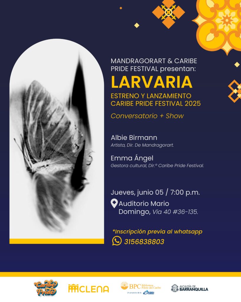 Con el inicio del mes del orgullo llega Larvaria, la nueva producción de Mandragorart, materializada de la mano del Caribe Pride Festival. Esta propuesta escénica busca abrir la conversación y reflexión en el público barranquillero, en el marco de la agenda cultural del Pride 2025.