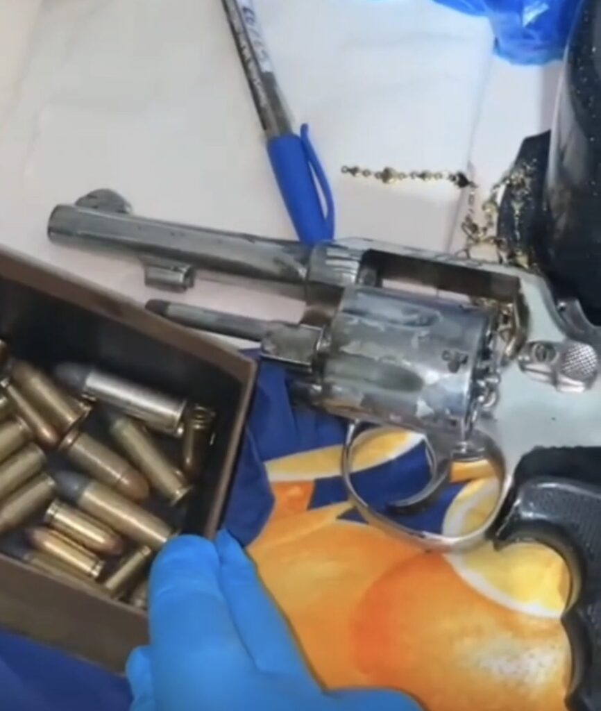 Durante el procedimiento, los uniformados incautaron un arma de fuego tipo revólver calibre 38, seis cartuchos calibre 38, dieciséis cartuchos calibre 32, cuatro cartuchos calibre 9 mm, siete teléfonos celulares y la suma de $7.420.000 en efectivo.