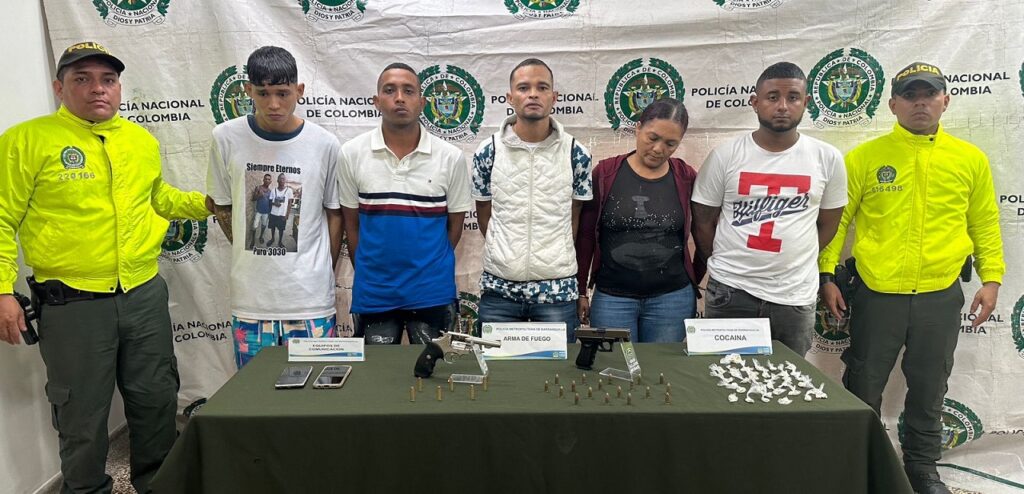 “De igual manera se logró incautar una pistola marca Glock cal. 9mm , un revólver, 18 cartuchos calibre 9mm, 6 cartuchos calibre 38 mm, 500 gramos de bazuco y un celular. Estos sujetos registran anotaciones judiciales por los delitos de homicidio, porte ilegal de armas, concierto para delinquir, tráfico de estupefacientes y hurto”, añadió la Mebar.