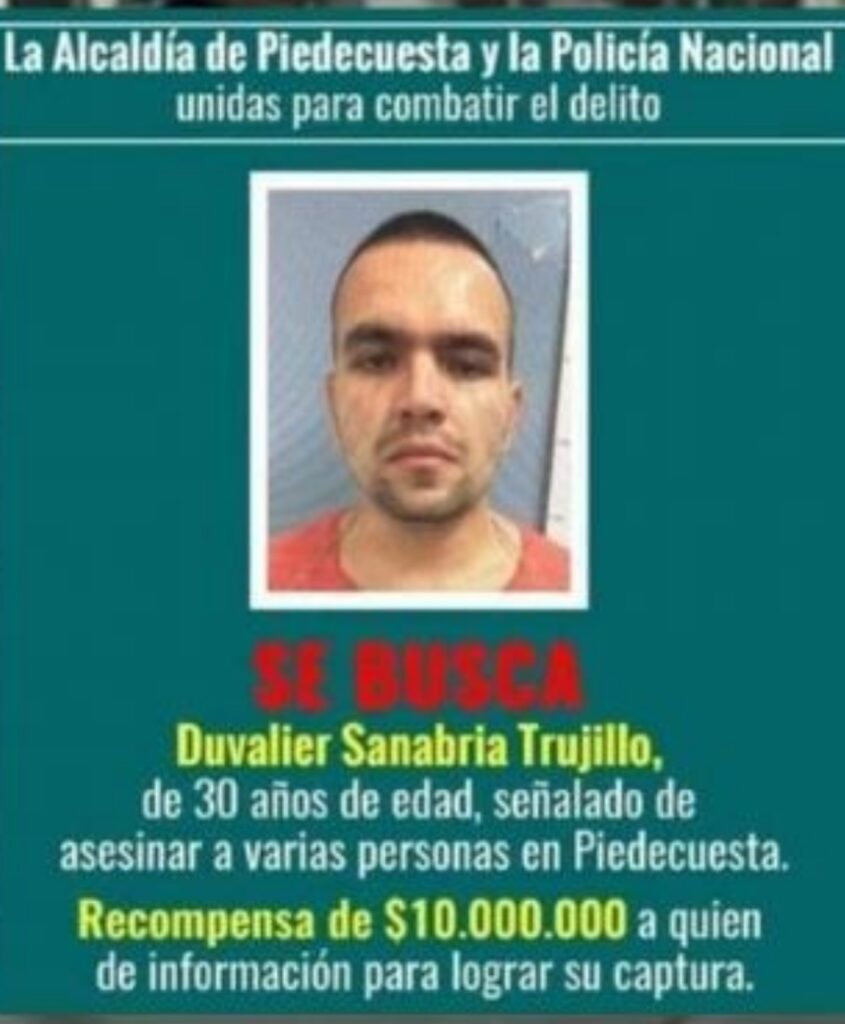 La Policía Nacional, en coordinación con la Seccional de Investigación Criminal (Sijín) y la Fiscalía General de la Nación, logró la captura mediante orden judicial de un individuo conocido con el alias de Bebo, señalado del homicidio de Duvalier Sanabria, uno de los más buscados en Piedecuesta, Santander.