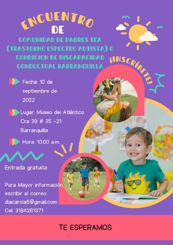 A las 10:00 a. m. del próximo 10 de septiembre se llevará a cabo en el auditorio del Museo del Atlántico el Encuentro de Comunidad de Padres TEA o Condición de Discapacidad Conductual Barranquilla.