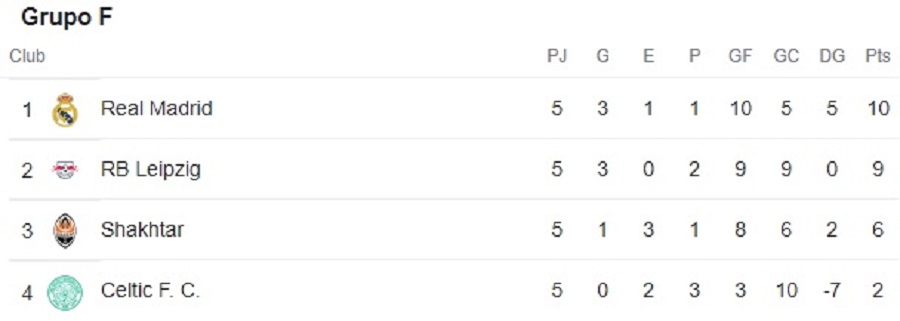 En el caso del F, a las 12:45 p. m., Real Madrid, ya en octavos desde la jornada anterior, se medirá en el Santiago Bernabéu al eliminado Celtic de Escocia.