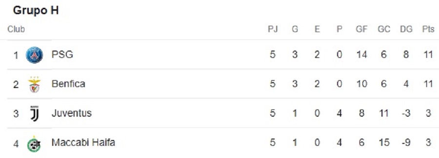 En el último cuadrangular, el H, aquí París Saint-Germain de Francia y Benfica de Portugal ya habían salido airosos desde la quinta fecha, mientras la Juventus de Italia y Maccabi Haifa de Israel habían dicho adiós en la misma.