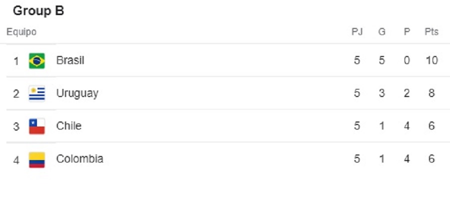 En estos momentos, Colombia continúa de cuarta en el fondo de la tabla del Grupo B de estas Eliminatorias de las Américas contabilizando 6 unidades, las mismas del tercero que es La Roja, superando estos últimos a los ‘cafeteros’ por la diferencia en puntos; el de la Tricolor es de -80 y el de Chile es de -48.
