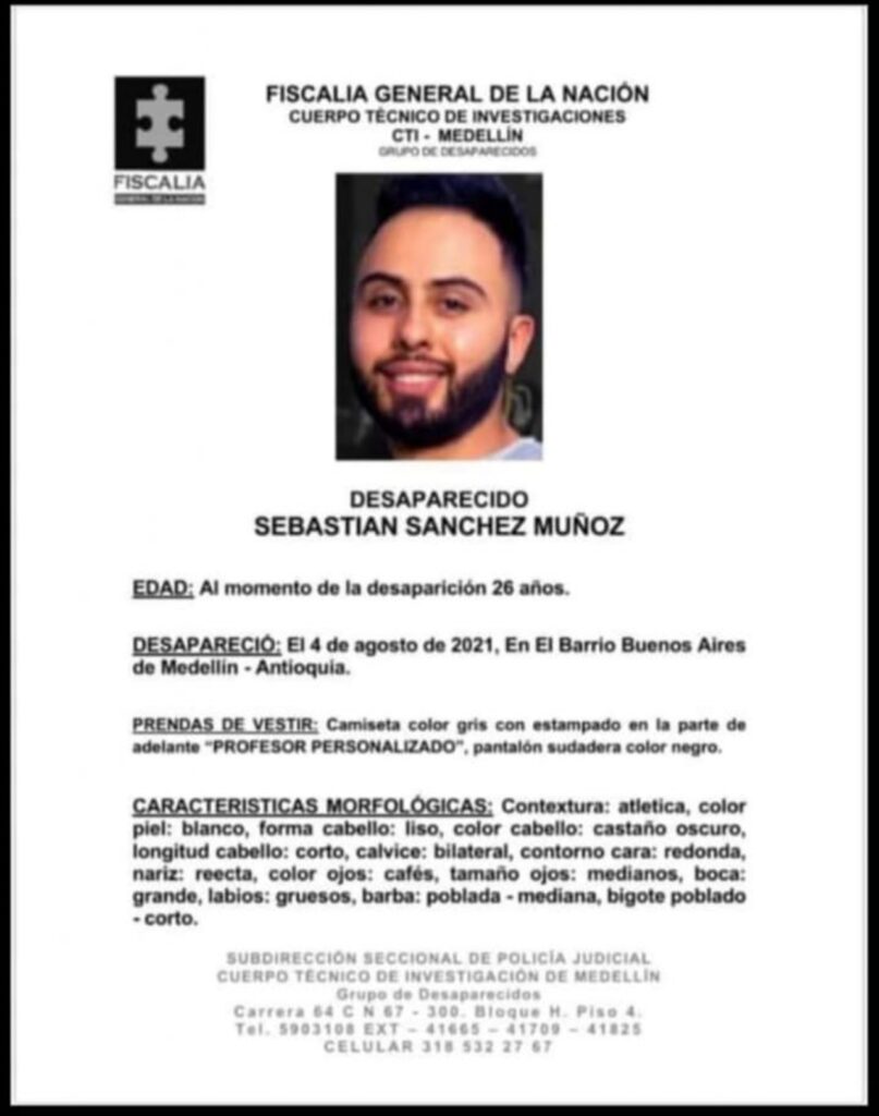 Un juez de conocimiento de Medellín, Antioquia, condenó a 39 años y 4 meses de prisión al expatrullero de la Policía Nacional Juan David Palacios Palacios, de 28 años de edad. La decisión se dio luego de que el hombre fuera encontrado responsable del asesinato de Sebastián Sánchez, entrenador de un gimnasio del barrio Buenos Aires, en la capital antioqueña, con quien tenía una relación de amistad.