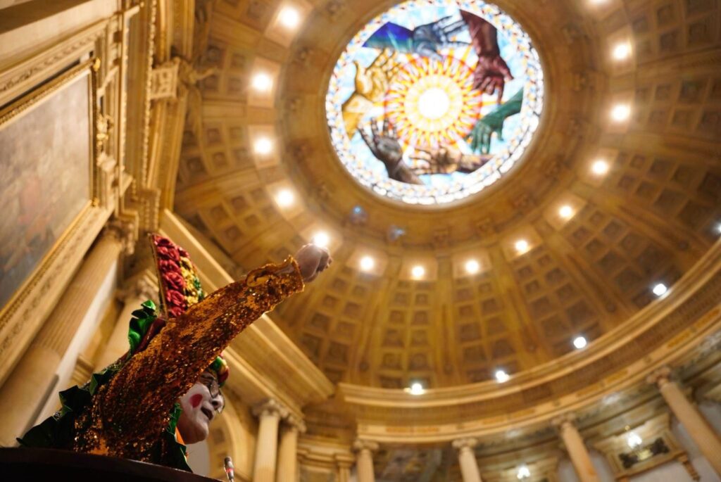 “Estoy muy orgulloso de llevar este inmenso legado de lo que significa el Congo Grande de Barranquilla, una institución cultural que exalta nuestra fiesta ante el mundo”, expresó el rey Momo, Adolfo Maury Cabrera, en medio de la ceremonia tras haber recibido el reconocimiento por parte del senador Efraín Cepeda.