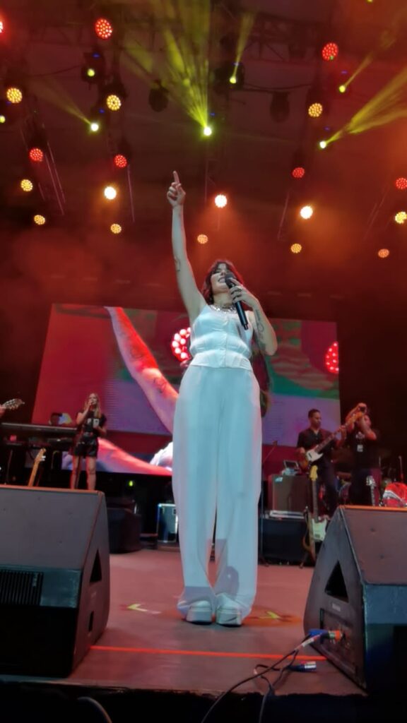 En medio de otras canciones, no podía faltar el agradecimiento de la artista a Radio Tiempo y a la Arenosa: “Es muy raro que una artista mujer y que no sea de Colombia tenga la oportunidad de regresar en menos de un año al mismo lugar, por esa razón para mí regresar a Barranquilla e iniciar de esta forma tenía que ser así. Gracias Barranquilla”, a propósito del concierto que brindó el 19 de mayo de 2022 en el mismo lugar.