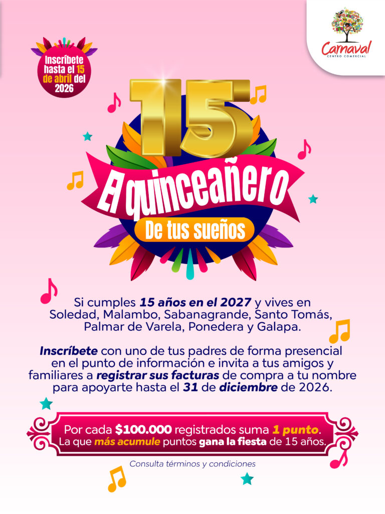 La iniciativa está dirigida a jóvenes que cumplirán 15 años en 2027 y residan en municipios como Soledad, Malambo, Sabanagrande, Santo Tomás, Palmar de Varela, Ponedera y Galapa. Las interesadas podrán inscribirse hasta el próximo 15 de abril de 2026, dando inicio a una competencia en la que la perseverancia y el apoyo de familiares y amigos serán clave.