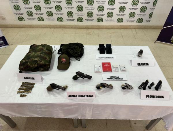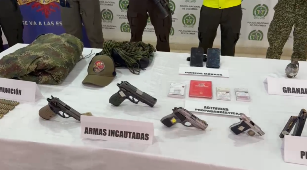 De otra parte, el director de la Policía Nacional, general Carlos Fernando Triana, indicó que en la operación fueron incautadas cuatro armas de fuego, una granada, municiones de diferente calibre y una cartilla alusiva al ELN..