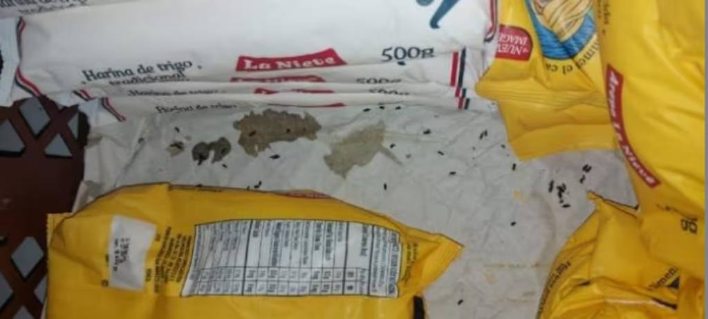 El informe acota que entre dichos hallazgos sobresalió la presencia de heces de ratón en bolsas de harina de trigo y de maíz; moscas en otro estante en el que también había harina y heces de roedor en sitios de almacenamiento de alimentos en colegios”.