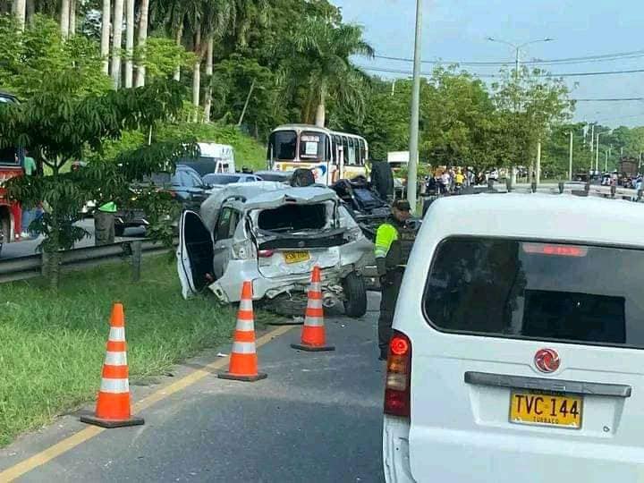 El terrible accidente de tránsito sucedió sobre las 8:00 de la mañana de este jueves, cuando un camión que transportaba una carga de yuca sufrió una avería al quedarse sin frenos, en el sector conocido como La Loma de Turbaco, en la Troncal del caribe y terminó desencadenando un múltiple choque que paralizó por varios minutos la movilidad.