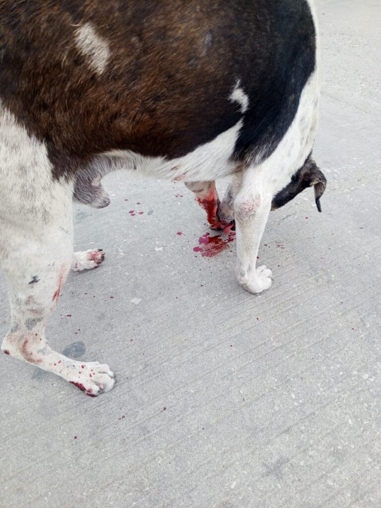 “Un sujeto, reciclador, que vive aquí mismo en el barrio, iba pasando y el perrito callejero estaba acostado, el sujeto llevaba un cuchillo en la pretina y le atravesó la pata, el perrito se está desangrando en plena vía pública”, contó un vecino.