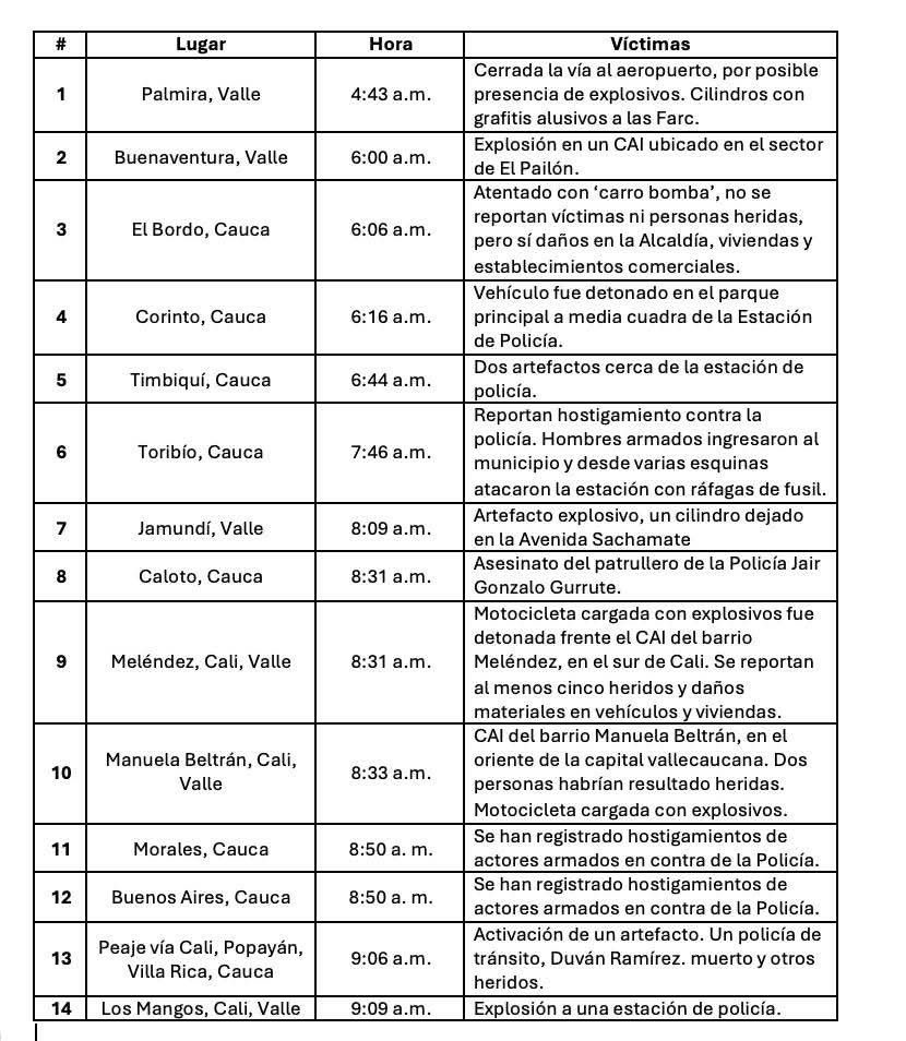 Estas amenazas y advertencias vaticinan un panorama más turbio y gris para el país en las próximas horas y días, sobre todo en el suroccidente, en departamentos como Cauca y Valle del Cauca, en donde se han evidenciado y reportado 14 afectaciones al orden público desde la madrugada de este 10 de junio.