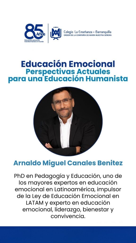 Arnaldo Miguel Canales Benitez, referente latinoamericano en educación emocional, estará encargado de la ponencia central, de 2:00 p. m. a 3:00 p. m., bajo el nombre de “Educación emocional y bienestar: claves para la vida escolar y personal”.