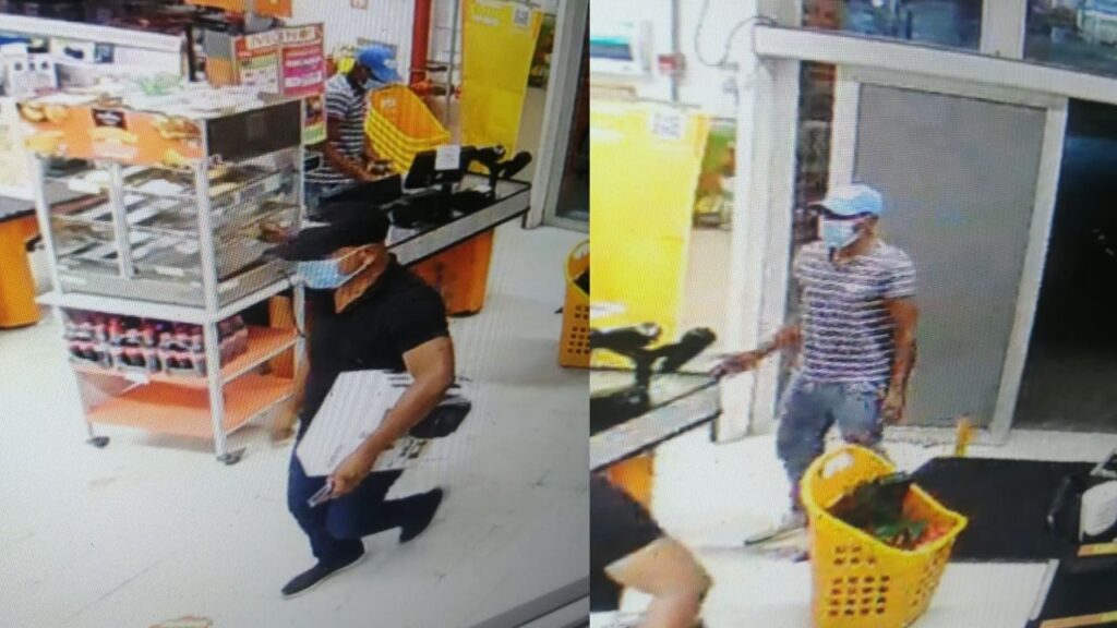 Al momento de cometer el hurto, uno de los sujetos llevaba puesto una camiseta tipo polo, una gorra y zapatos de color negro y jeans oscuro. Mientras que el otro detenido llevaba una camiseta de rayas negras con blanco, jeans y zapatos claros.