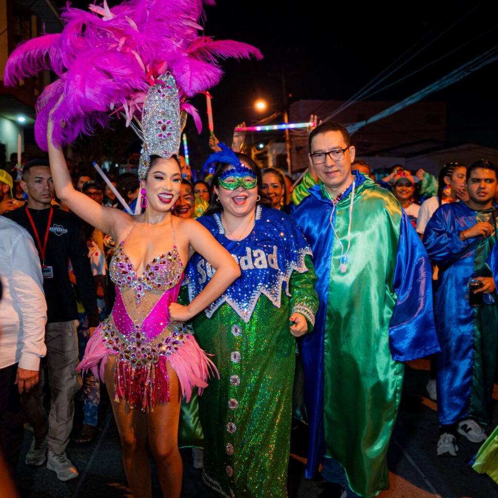 El rey Momo, Ricardo “el Chino” Durán, también desfiló junto a los reyes infantiles, Lauren y Emamuel y los reyes diversos, acompañados de su comitiva y un bloque de disfraces, grupos de cumbias representativas de Soledad y comparsas.
