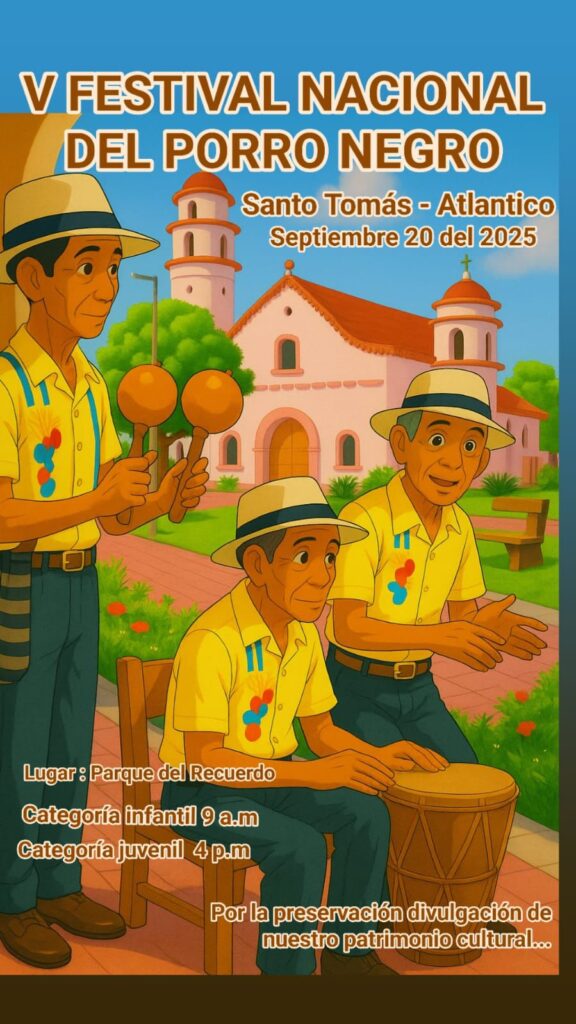 Con el respaldo de la Gobernación del Atlántico, a través de la Secretaría de Cultura y Patrimonio, y la Alcaldía de Santo Tomás, este sábado 20 de septiembre el ‘Pulmón Verde del Atlántico’ celebrará la quinta versión del Festival Nacional del Porro Negro, una tradición que forma parte de sus fiestas patronales en honor a Santo Tomás de Villanueva.