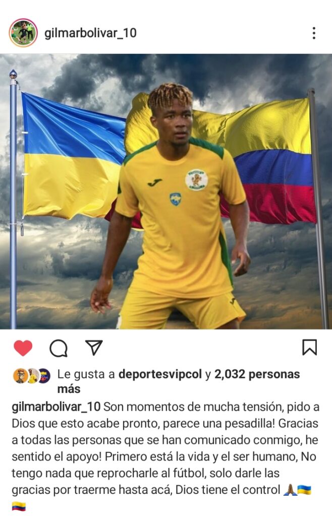 Al S.O.S. lanzado por jugadores brasileños que militan en equipos de la Primera División de la Premier League de Ucrania, se sumaron los futbolistas colombianos Gilmar Bolívar, Duván Balceiro y Brayan Riascos, quienes piden a gritos a la Cancillería de Colombia que los ayude a salir de territorio ucraniano ante el temor de ver peligrar sus vidas por el ambiente que cada hora que pasa se siente más pesado.