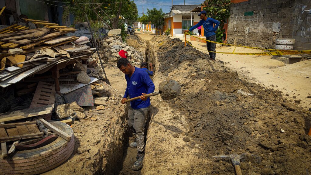 La Alcaldía de Soledad, a través de la Secretaría de Obras Pública, avanza en el proyecto de reposición de redes de alcantarillado y saneamiento básico, en el barrio Primero de Mayo.