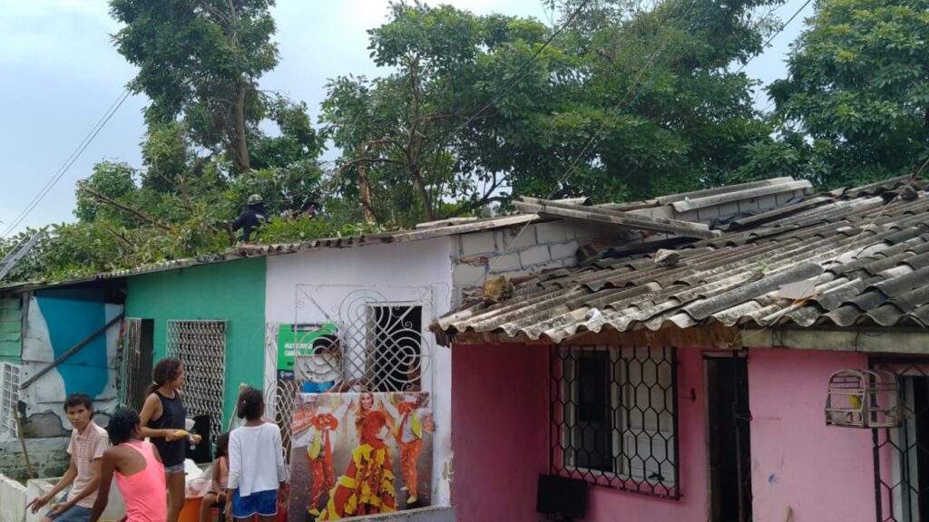 Incluso, un árbol frondoso cayó sobre dos viviendas, por lo que uniformados de la Policía, quienes fueron los primeros que arribaron al lugar, solicitaron la ayuda del Cuerpo de Bomberos de Barranquilla y de la Defensa Civil.