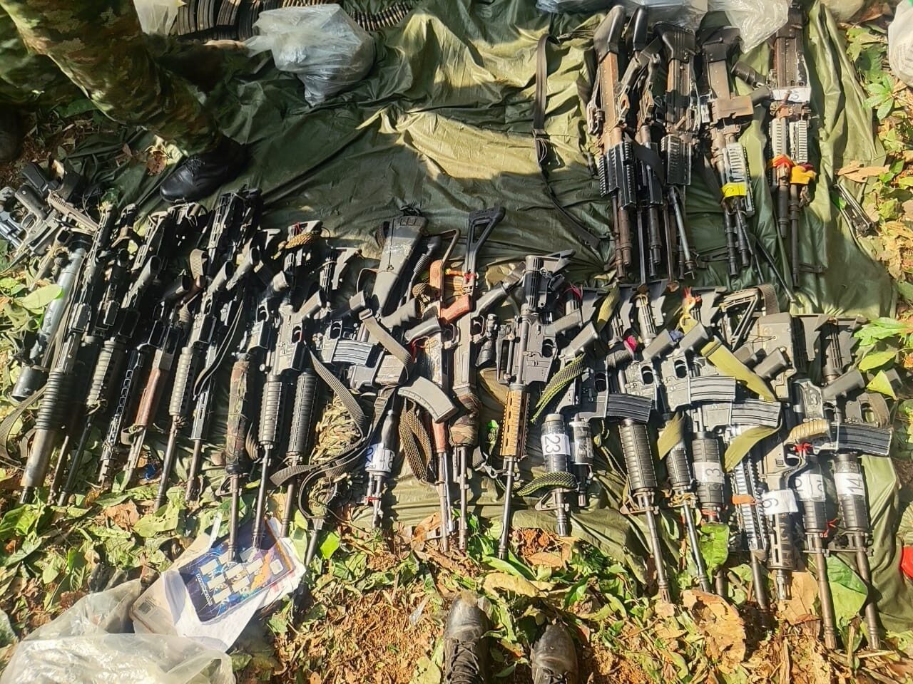 “Se incautaron 30 armas largas, entre ellas cinco ametralladoras, 10 armas cortas, un lanzagranadas M-203, 30.200 cartuchos, 40 granadas de mortero, 13 dispositivos explosivos improvisados aerotransportados para dron, 300 detonadores y abundante material de guerra que sería usado para afectar a la población y la fuerza pública”, describió el Ejército tras la operación.