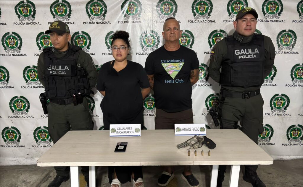 En el desarrollo de los procedimientos, las autoridades incautaron un revólver y dos teléfonos celulares que eran utilizados por los delincuentes para llevar a cabo las extorsiones.